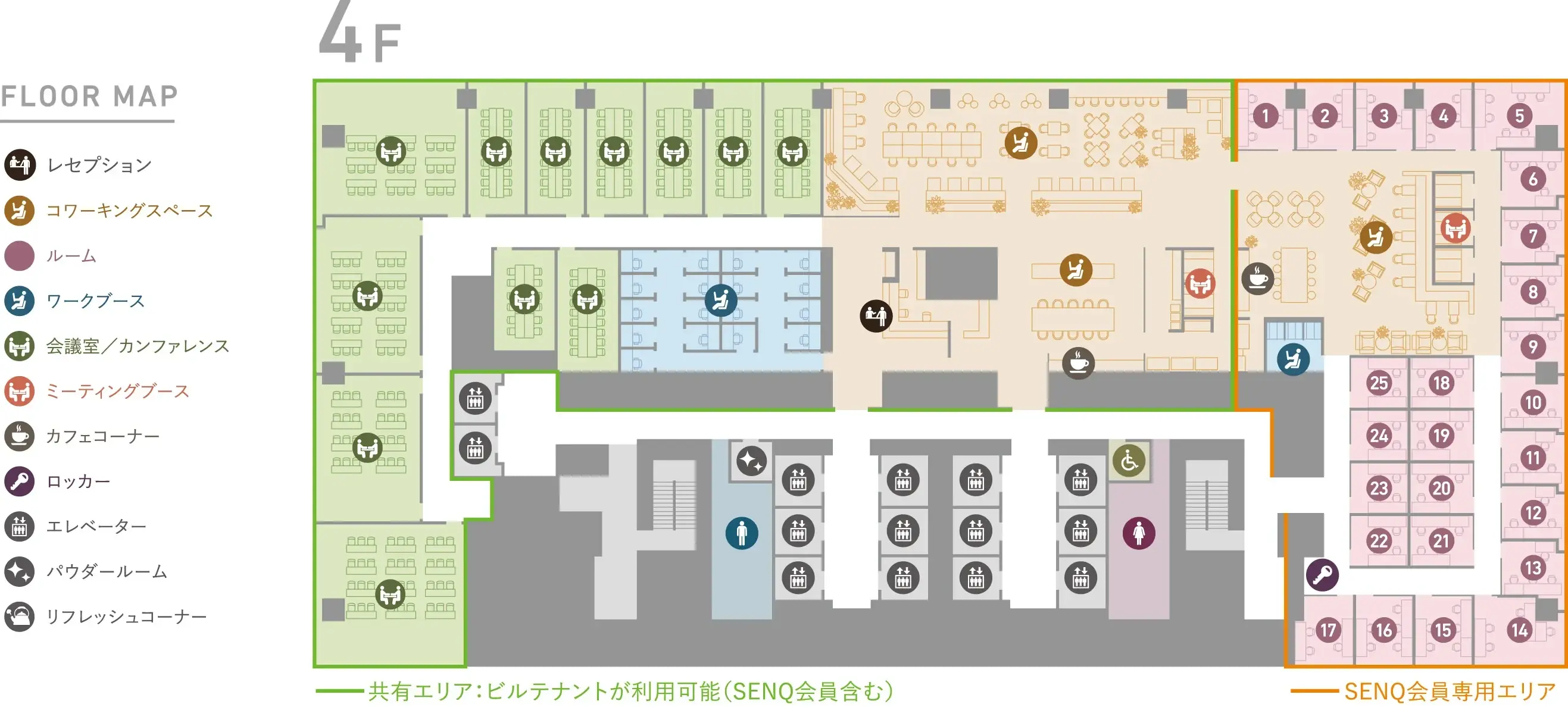 - SENQラウンジの他、ビル共有のラウンジも利用可能です。