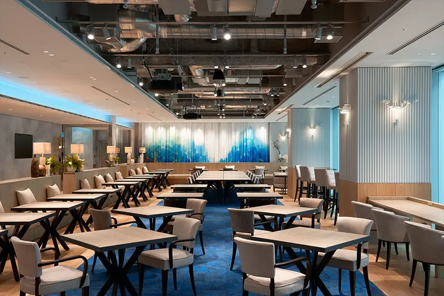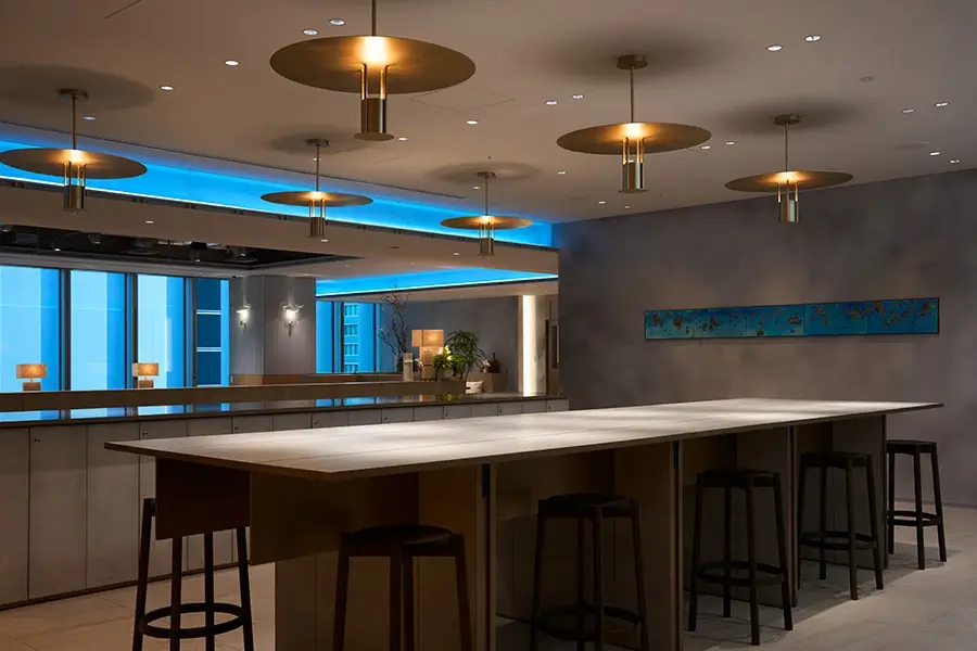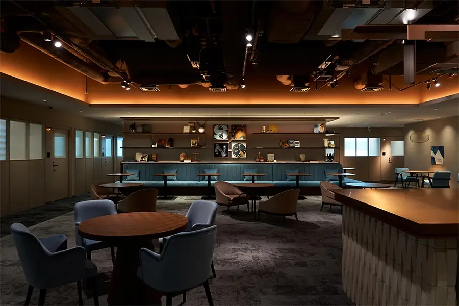 落ち着いた雰囲気でお仕事ができるSENQ会員専用エリアや、広々としたビル入居者専用の共用ラウンジや最大90名程度までご利用いただけるカンファレンスもございます。